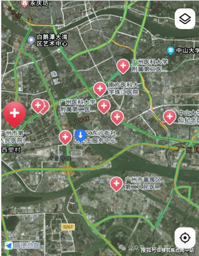 东沙大道快速接驳环城高速、东新高速;白鹅潭大道串联十里沿江总部经济带;东沙隧道(在建中)、丫髻沙大桥直达海珠