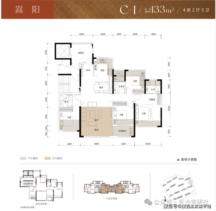 1. 所处位置:133㎡的边户户型为7、10、11号栋,均为32层高层;