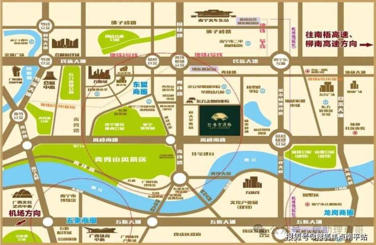 凤岭南路、民族大道双主干道环伺,地铁1号线飞达邕城南北;琅东客运站、南宁火车车站等一站迅达全区;凤岭南路一轴绿脉。