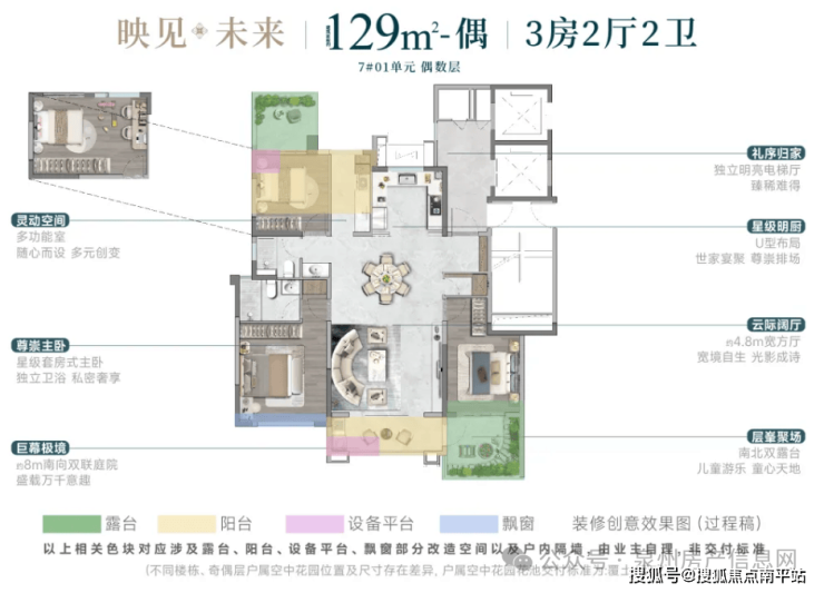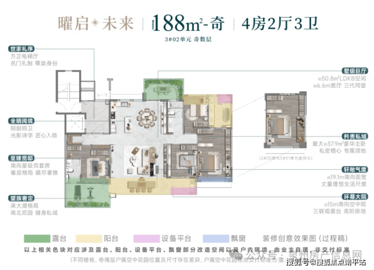 这次曝光的户型,才是真正的重头戏。项目主打建面约129㎡、143㎡和188㎡三个面积段 ,全部都是“第四代住宅”设计,每家每户都有巨大的空中露台或庭院。