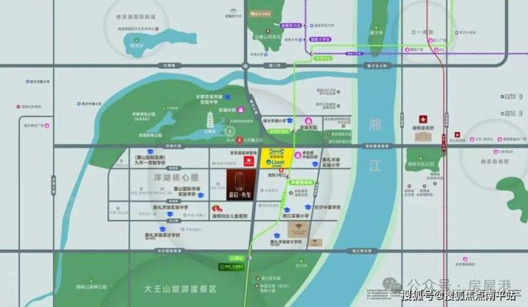 项目位于岳麓区景园路与潭州大道交汇处西南角,距离地铁3号线洋湖湿地站约400米,北面一路之隔是约4万方的京东MALL,南面一路之隔是湖南妇女儿童医院,距离洋湖宜家/荟聚约300米,距离国家4A级景区、约7200亩的洋湖生态湿地公园仅两个路口。