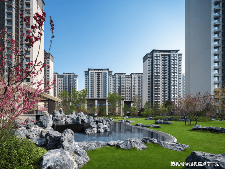园区的南侧空间是小区的中央景观线,中庭营造浓重的山水画卷感,两侧植物开道,以水景为聚焦点。