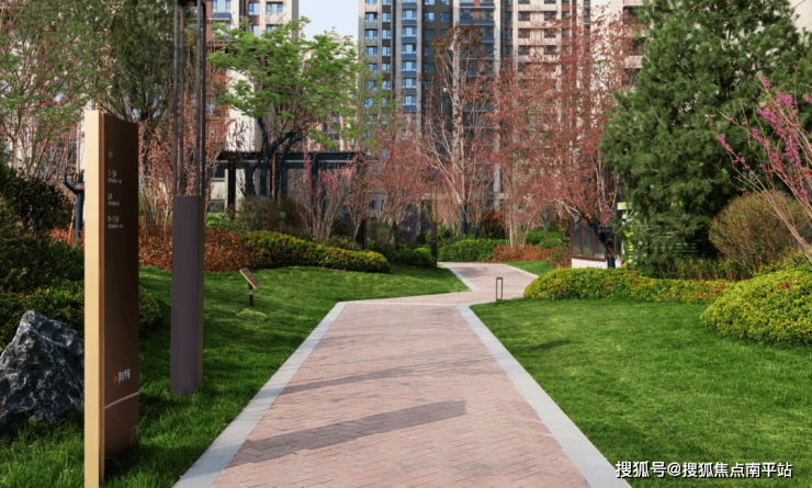 在中央景观线中形成人与自然和谐共处的美好体验。植物茂盛,郁郁葱葱,待到夏季来临之际必定是鸟语花香、绿树成荫。