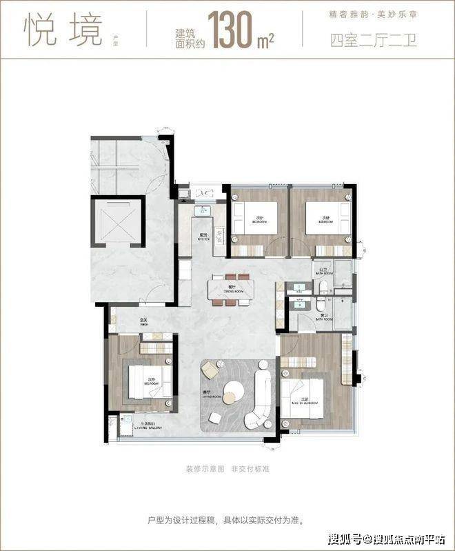 而130㎡户型则采用南向3开间设计,适合二孩家庭的需求。