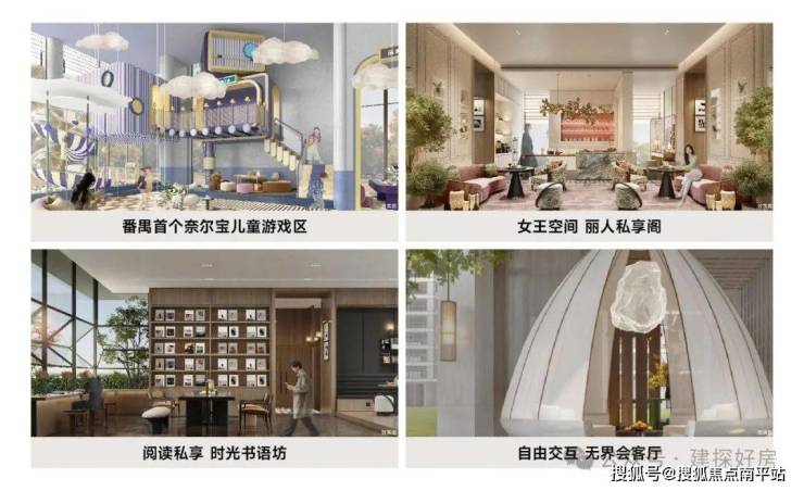 ◎规划打造四大主题架空层空间,涵盖儿童趣玩、邻里社交、休闲书吧、女王私享等全龄多彩锦盒