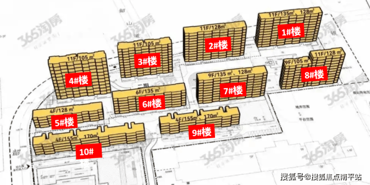 住宅地块规划为10栋建筑,楼栋均为2个单元,包括11层洋房5栋(8号楼东单元为11层)、9层洋房1栋、6层洋房1栋、4层洋房1栋,4层叠墅2栋。