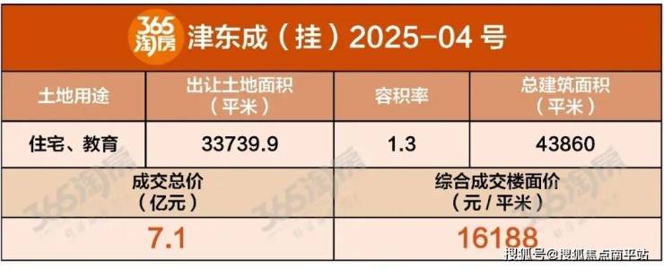 2025年2月26日,河东工大2号地由成都宏岷城市建设发展有限公司、杭州宏临城市发展建设有限公司、天津市津嘉产业投资运营有限公司联合体(津嘉产业联合体)竞得,总价71000万元,折合楼面价16188元/㎡。