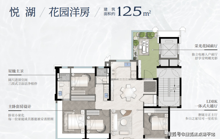 望湖建面约125㎡亲湖洋房,约17㎡独立入户花园+独立储藏间。正4+1房约106%超高使用率,约3.1米层高+约40m宽厅+三卧朝南且均可摆放1.5米大床,多孩家庭、父母小住、亲友欢聚皆从容,舒适度大大提高。