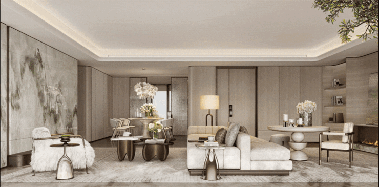 其客厅的打造,融入了全景舱的设计,允许业主消弭客厅两侧墙体,形成 完美连贯的使用空间。