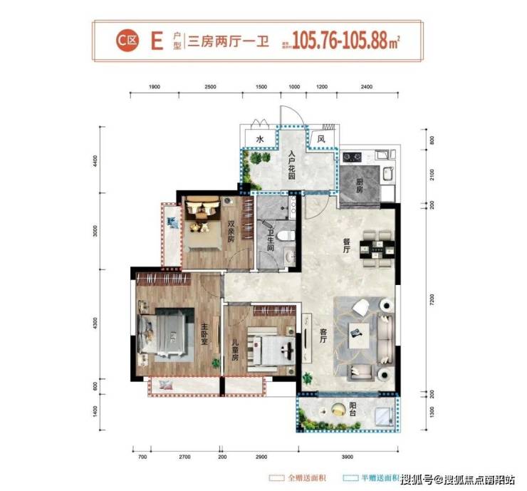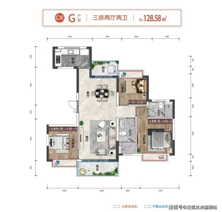 🔹共享空间,厨餐客阳台一体,阖家欢喜满堂