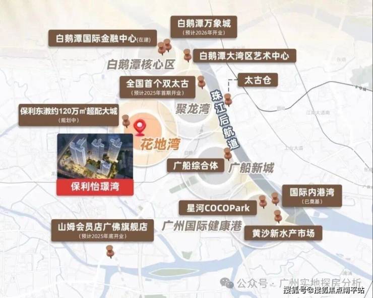 四大商业街区等沿着白鹅潭大道北上,顺达万象城、双太古广州重奢商圈。