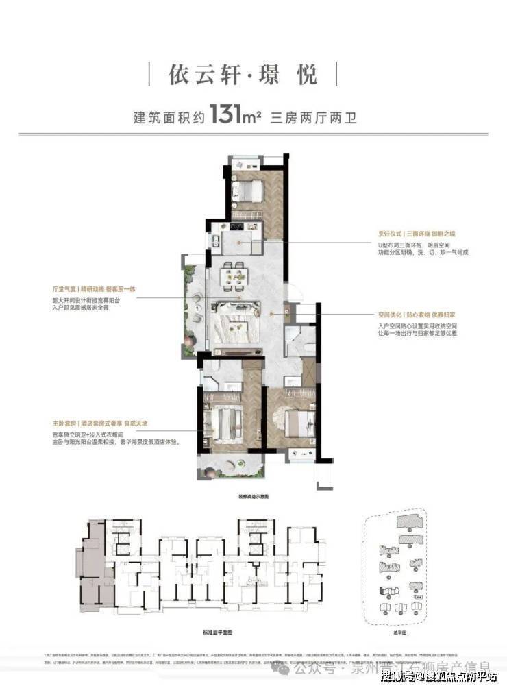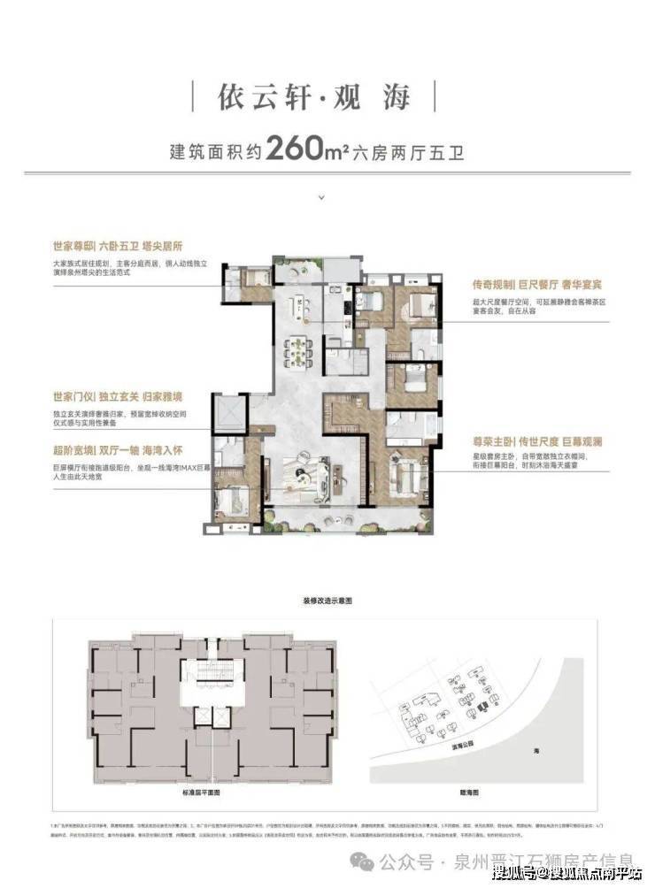 项目立足泉州高阶人居需求,精准规划覆盖不同家庭阶段的产品矩阵:主打 建面约109-141㎡三至四房,满足城市新贵与品质改善所需;更推出 建面约163-260㎡头排海景大平层,一梯两户,以稀缺资源与阔绰尺度,敬献层峯人士。