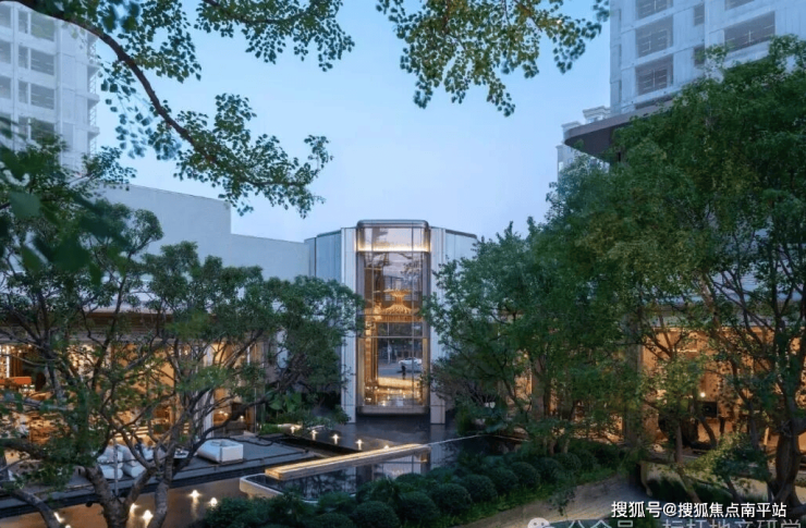 大区为台地式高差:商业配套掉层处理,让渡给住宅区完整独立的地面空间。形成悬浮在城市上层的立体园林。