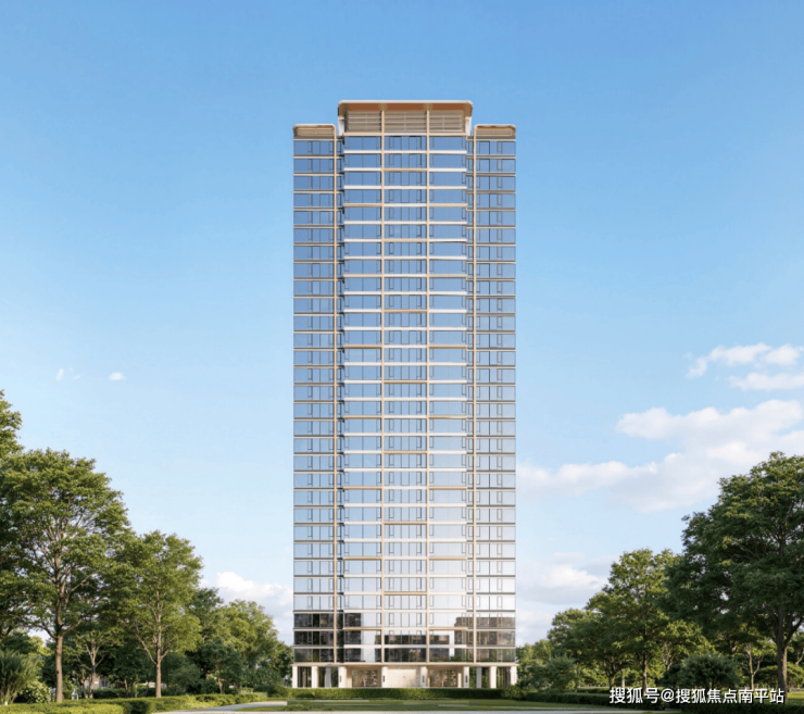 +铝板,把近人尺度的品质感拉满。顶部塔冠采用弧形元素,配合香槟金色金属材料,成为本小区标志性的灯塔符号。建筑形体规整,线条明细,呈现出精致的现代典雅风格,构建出长沙品质住宅小区的标杆形象。