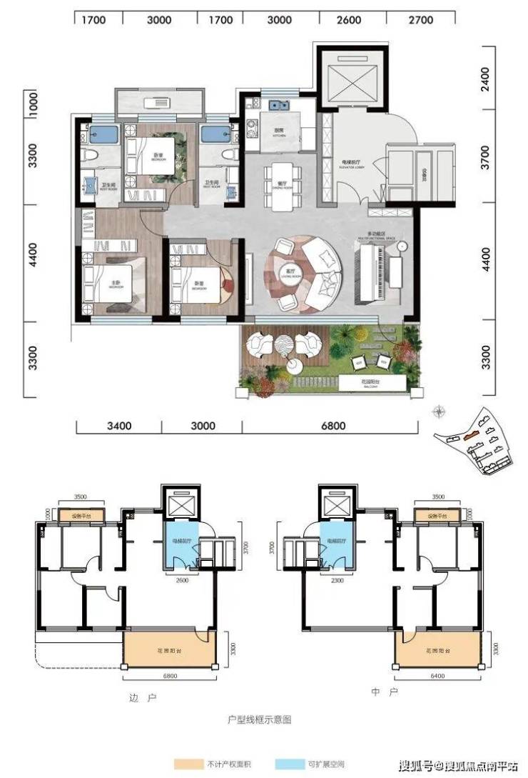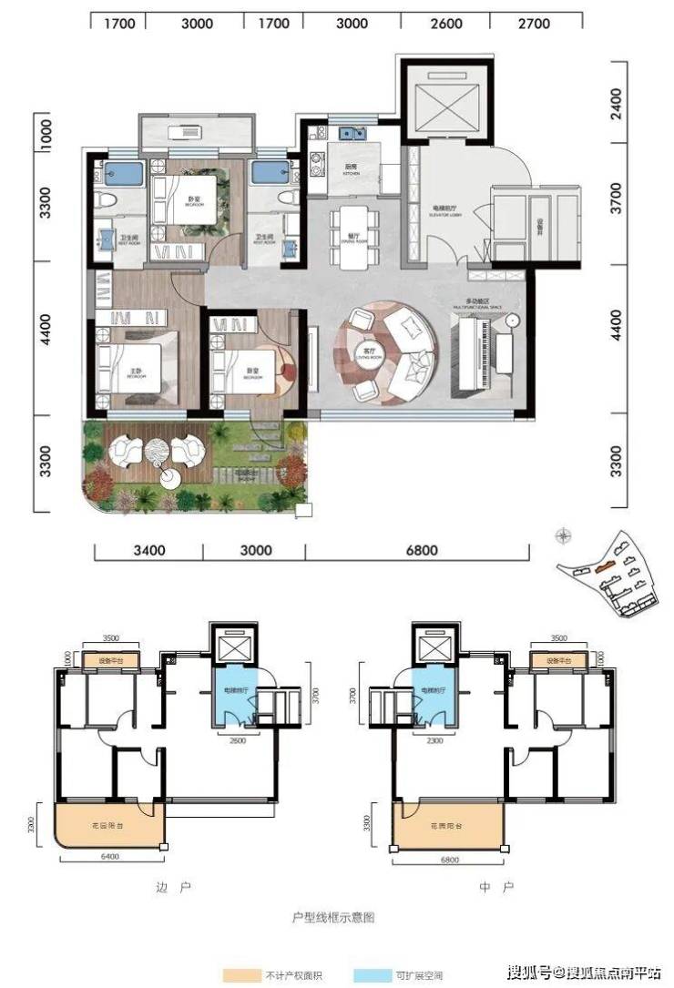 丰富灵活的可拓展空间,实现超高得房率,满足家庭不同阶段空间布局需求,尽显高端房产的价值优势。
