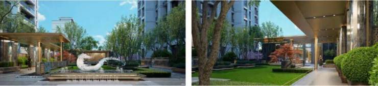 中央会客厅、主题雕塑、对景景墙、阵列树池,不仅是园林空间的中心,更是邻里社交的温馨场所。