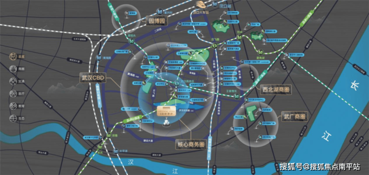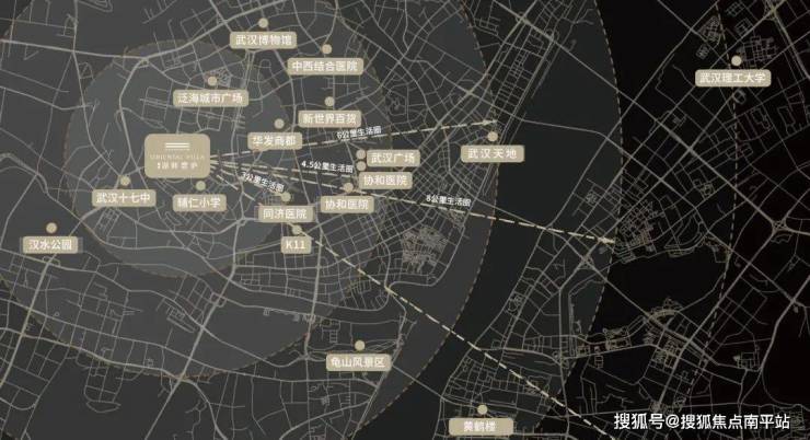 优渥资源 : 毗邻华发商都、花园道、龙湖天街、武广等城市商圈,临近梦泽湖公园、辅仁小学以及同济、协和医院等城市高阶医疗资源。