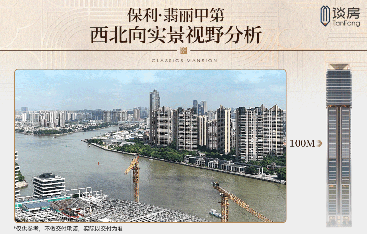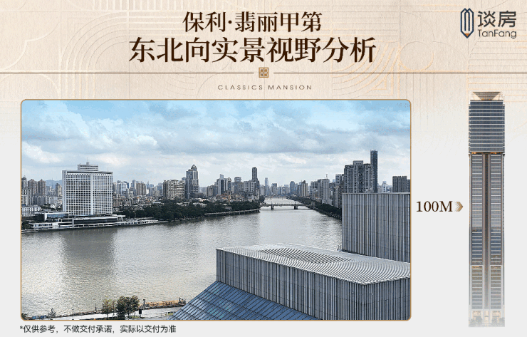 东北向,尽看鹅潭夜月的原境,流动的江水一路向东,视线蜿蜒至广州塔三件套。
