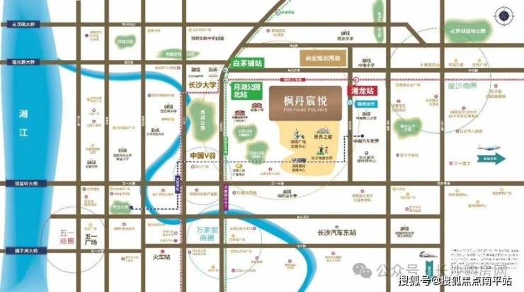 地铁:地铁3号线湘龙站(约300米)与5号线白茅铺站(约1公里)