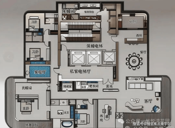 5梯2户:近乎私梯的配置(平均2.5梯服务1户),出行便捷无忧。适合追求极致空间体验与顶级服务的家族或精英领袖。