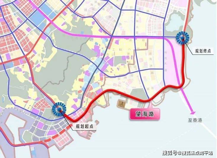 蛇口的交通规划中最令人期待的莫过于望海路快速化改造,东西向连接兴海大道和沙河西路,全长约为8.241公里,呈“U”字形,将极大提升片区通达度,改造已于2021年开工,工期预计为72个月,其中微波山隧道导洞已顺利贯通,预计今年10月完工。望海路将改造为“地下快速路——地面主干路”的复合通道。望海路快速通道西起兴海大道,东接沙河西路,途经太子湾、海上世界、蛇口老城、后海填海区等片区,全长约8公里。据悉,望海路改造将分为地下、地上双层道路,其中,地下道路定位为城市快速路,地面道路定位为城市主干道。建成后,蛇口半岛将形成快速环路,对外出行时间平均缩短15分钟以上,为整个南山区,尤其是前海蛇口自贸片区提供更加高效、快捷的对外联系通道。望海路由目前的双向4车道,