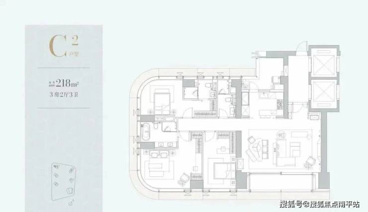 共135套,其中218㎡90套,211㎡45套,分布在C栋(51F),层高3.3米,4T3。