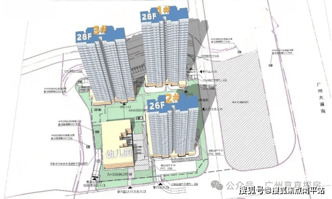 广府萬宸是中海在广州的首个 萬字系 ,甚至可能是全国第一座。一共规划了3栋住宅, 全都是南北对流的板楼 ,每栋26-28层不等,预计全盘货量150套左右。全盘只做了一个户型—— 约160-180平四房 ,因此 圈层非常纯粹 ,不存在大户型和小户型混住的情况。