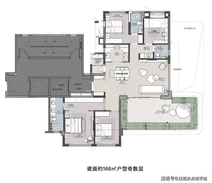 全盘共规划15栋住宅,合计户数650套,其中普通住宅4栋(184套),户型为建面约150㎡四房两厅三卫,生态住宅11栋(466套),户型为建面约166-320㎡空中花园平阔墅,以纯粹大户型成就高端人居作品。