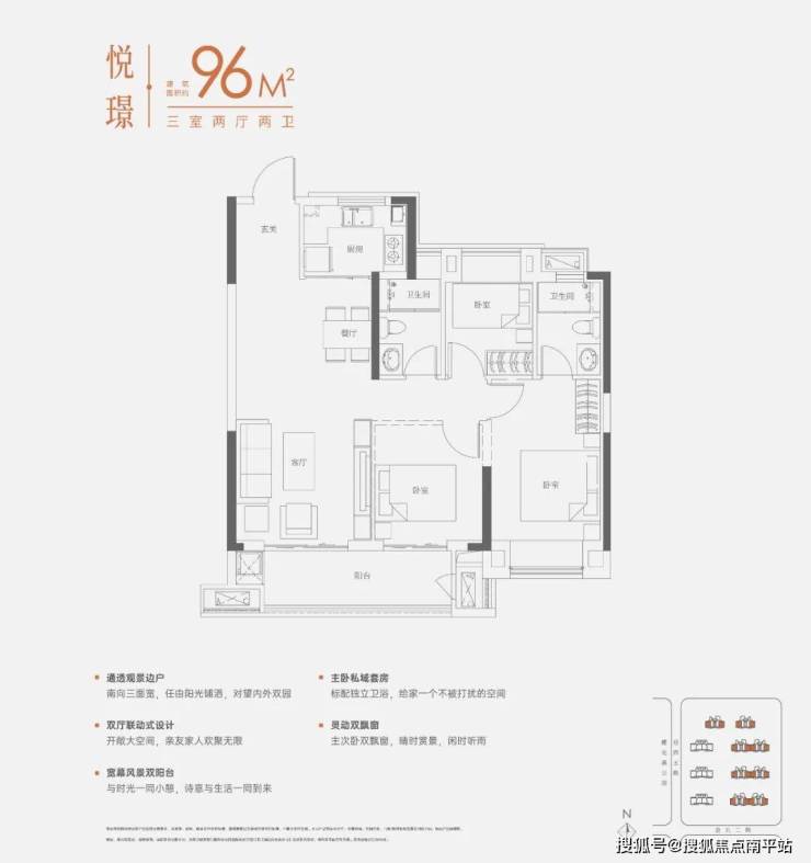 项目在售77-96平户型产品可满足区域刚改家庭需求,优化得房率可达约90%以上,不输市面很多准四代住宅。