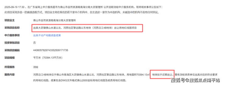地块位于佛山市大沥镇佛山水道以北、河西社区黎边路以东的河西沿江4B地块,用地面积达70394.13平方米,近日已启动测绘招标程序,预计近期正式出让。这宗地块东邻建发灯湖缦云,西靠保利天瓒,南向一线俯瞰佛山水道,拥有显著的景观优势。