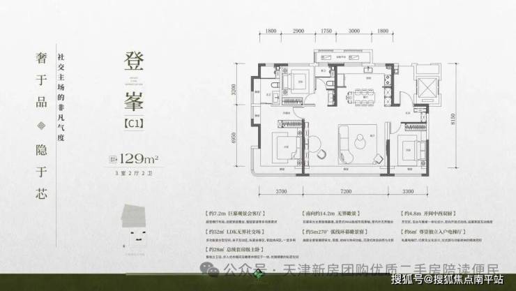 极致南向全面屏采光轴,全景舱式视野系统,270°寰幕曲面屏瞰景窗,玄关双收纳系统,空间扩容,超高得房率。