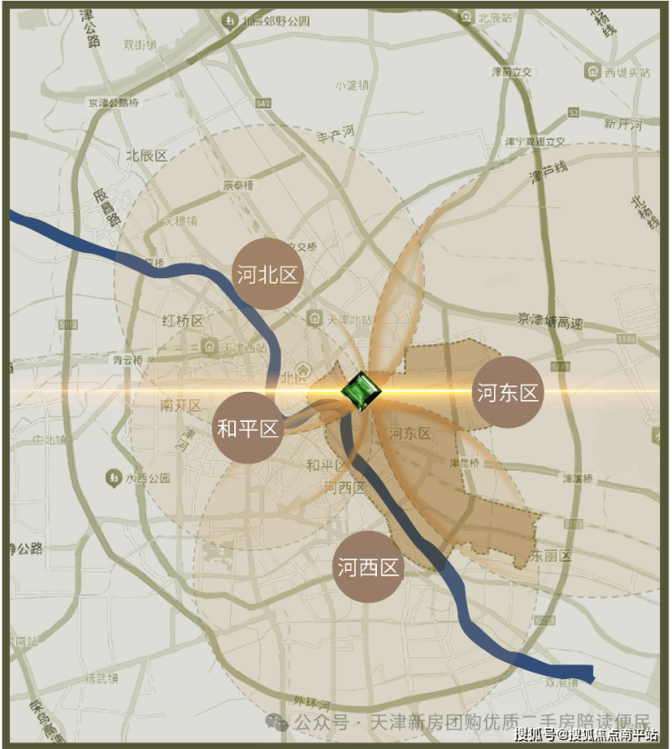 天津主城和平、河西、河东、河北四区交汇核芯,经由顺驰桥畅达远洋、万达爱琴海、嘉里汇、天津站、小白楼、滨江道等城市级商圈环伺,纵横串联,鼎级商业触手可及,都会繁华转瞬即达。