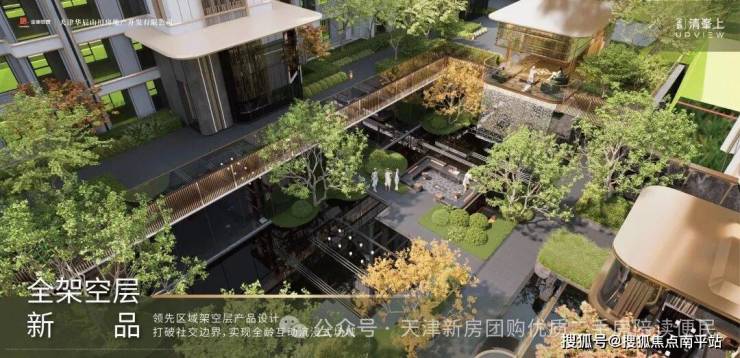 全架空设计,打造“第二地面”,室内会所空间联袂室外下沉庭院,