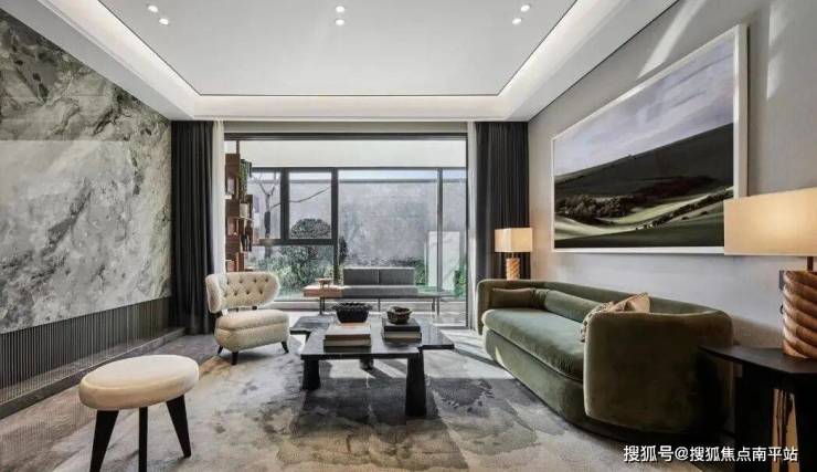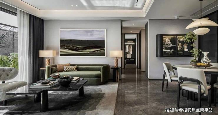 设计师依循大自然赋予万物的本色,客餐厅以绿色调和墨色叙述,感知天然隽永,于山林深处,洞悉风物形态,切身感受盎然生机,如置身森林,呼吸轻盈自由,映现林中风物的质感,原生写意,师法自然。