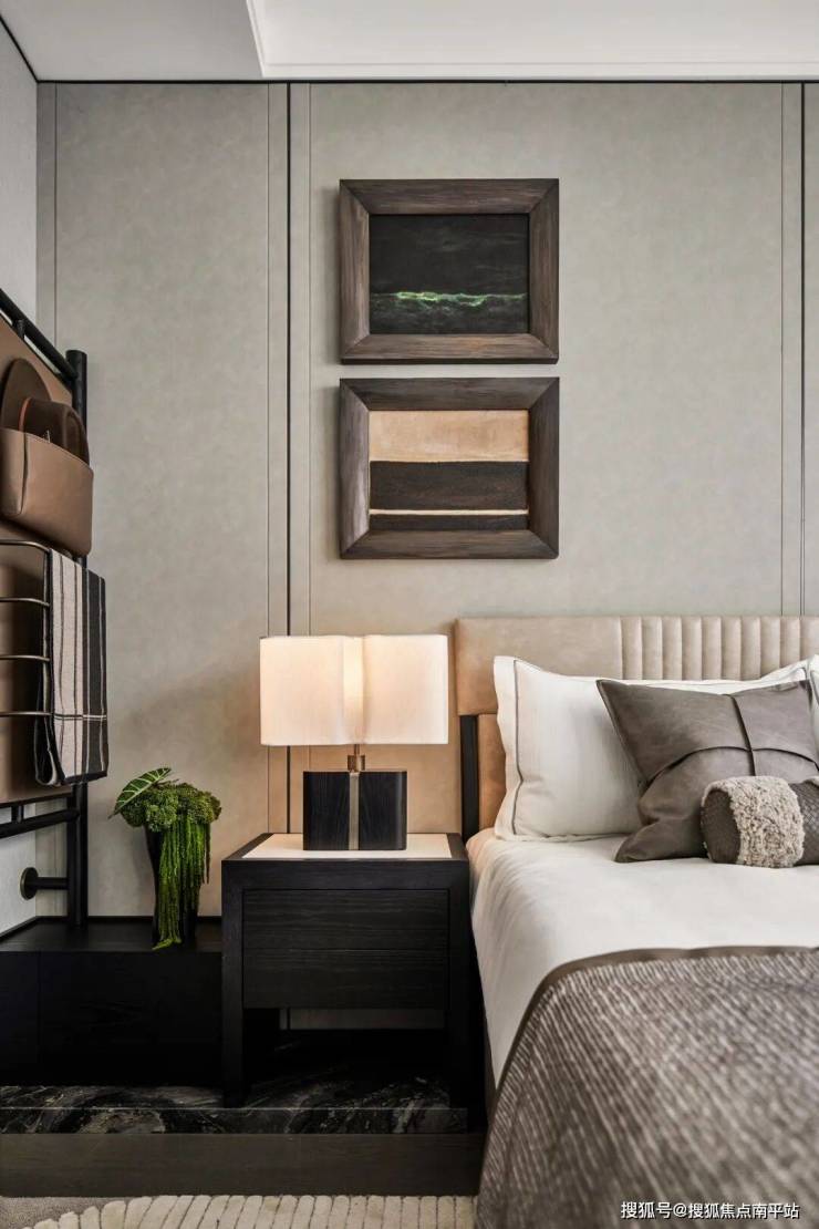 次卧以柔和淡雅的米灰色调,巧妙平衡轻盈与温润的质感,在方寸间容纳生活之美,彰显东方从容自在的雅趣审美。
