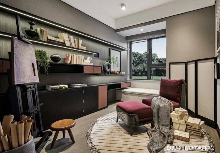 让艺术抵达生活,设计师将书房打造为居者的艺术天地,无限的灵感凝聚于画笔之中,尽显巧思,描绘出无限畅想的动人画卷。