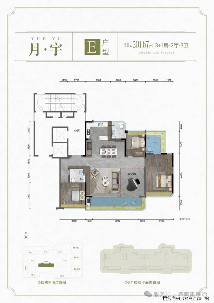 E户型: 建面约201.67㎡ 3+1房2厅3卫来电咨询☎️☎️400-159-8559转接7777【☎营销部电话已认证】