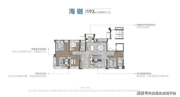 打造仅2.4低密规划尺度产品,东南向瞰景布局与楼栋排布,最大约百米楼间距,大中庭围合社区,实现几乎户户看海。特别是超大窗墙比,南向大面宽设计手法,轻松实现270度寰幕樾级海景视野,将瞰海发挥得淋漓尽致。