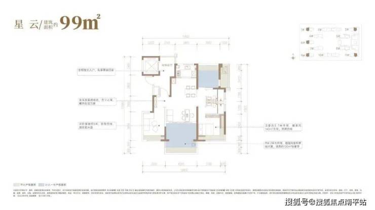 3. 零浪费新规户型:99-143㎡纯板楼,一梯一户,270°环幕端厅,得房≈110%。