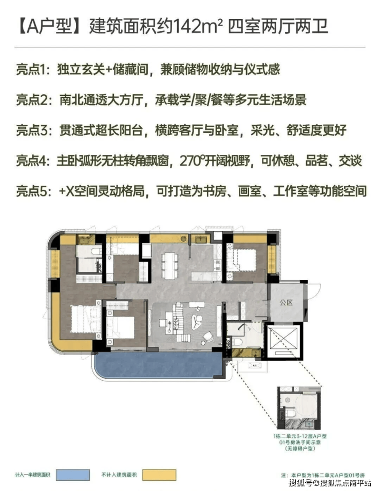 近100%使用率:新规取消冗余公摊,96㎡三房实现主卧套房+双卫布局,142㎡四房做到南北通透+动静分区,空间利用率远超传统住宅。