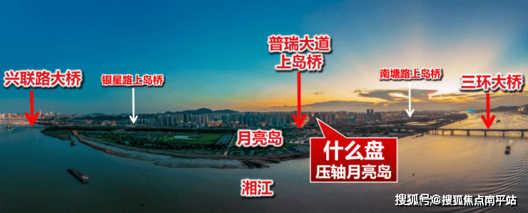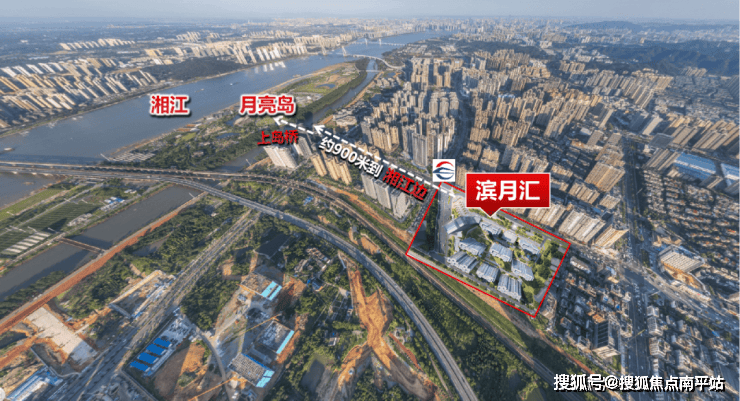 月亮岛,南边紧挨金融中心,一线临湘江、江岸有公园、江中有洲岛,成为长沙继橘子洲后又一“山水洲城”。与没有步行上岛桥的橘子洲完全不同的是,月亮岛修建三条上岛步行桥,其中一条就在滨月汇东侧,从楼盘东南角广场出发,沿普瑞大道往东,到湘江边约900米,步行上岛才约1000米。
