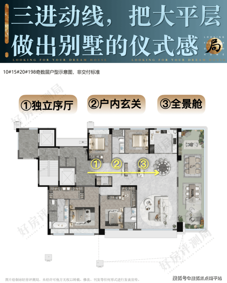华润置地晋江悦府旗舰,建面约338㎡想象力空前,所以这个户型评测局后期会单独做一个专题。