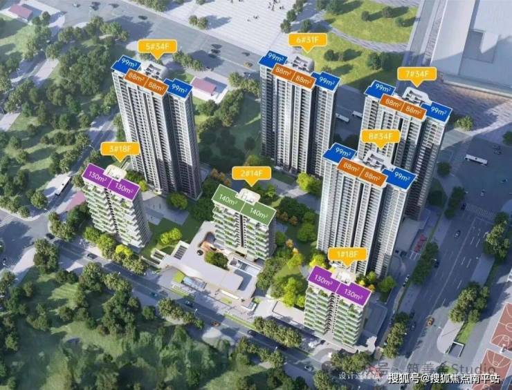 北高南低,东西高中心低,匠心布局,围合出1.2万㎡恢弘景观大花园,构筑藏风聚气的聚宝盆格局。项目涵盖88㎡、99㎡舒适住宅及130㎡、140㎡四代住宅,满足多元居住需求。