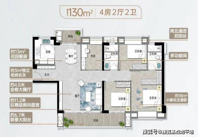 此户型诠释了“全家庭生活平权”的理念。约3㎡独立玄关,奠定了归家的仪式感;餐客厅与南北双阳台一体化联动,构成了强大的家庭社交场域;而星级主卧套间(步入式衣帽间、南向飘窗、独立卫浴),则在共享之外,为居者保留了私属的尊崇感。它确保了三代同堂或二孩家庭中的每一位成员,都能在空间中找到属于自己的舒适与尊严。