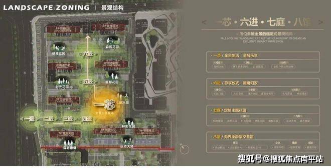 水墨江珊项目总用地面积约83亩,规划建设12栋高品质住宅。在空间布局上,项目以“一芯六进七庭”为设计理念,构建出一个层次丰富的居住体验: