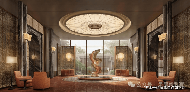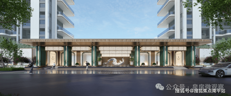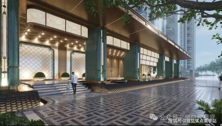 大门方面,打造南北两大风格各的封面级大门,北侧殿堂龍门,恢弘气势,6根「PRADA绿」柱,奠定第一眼奢华,高约6米、宽约50米奢阔门楣,敬呈尊崇归家礼序;南侧的“五锦龍门”,以宝格丽风格大门、五层递进锦墙、青龙古树,安放归家的从容心境。