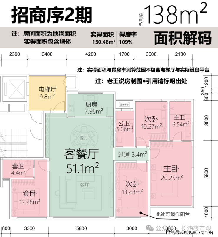 招商序2期的3个户型,123-138-155㎡,面积大小后期或有核增。这三个户型在结构上与一期的127-139-170㎡几乎是一样的,得房率相差也不大。
