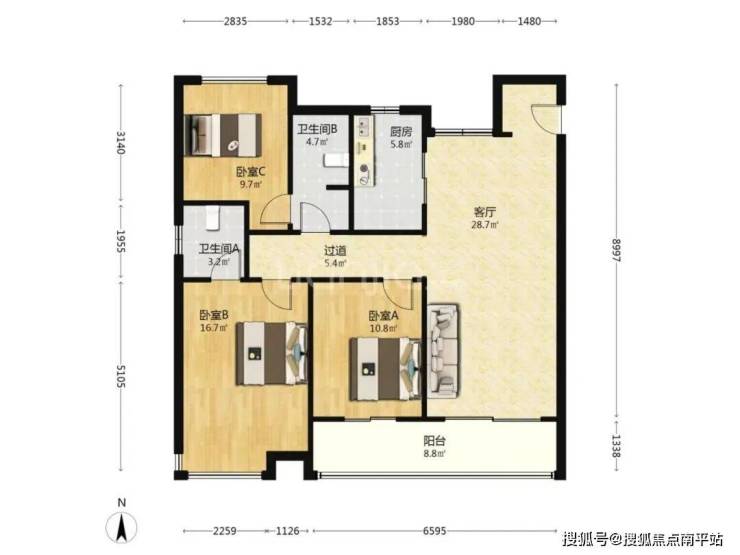建面约132㎡拥有开间约6.8米横厅,既视感直接对标河西180㎡滨江大平层。