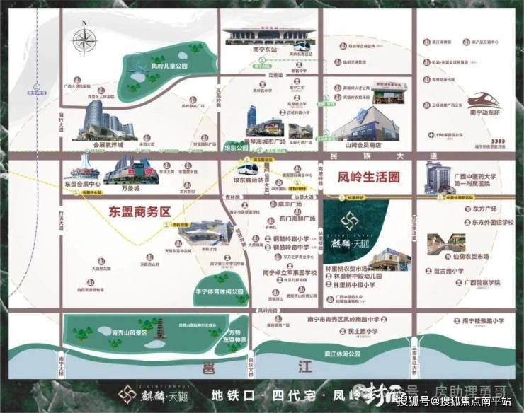 荟聚城市地标(东盟商务CBD、华润大厦)、高奢商圈(万象城、航洋城、东盟盛天地、凤岭万达)、鼎级配套(火车东站、埌东公园、凤岭儿童公园)等高定超级场域