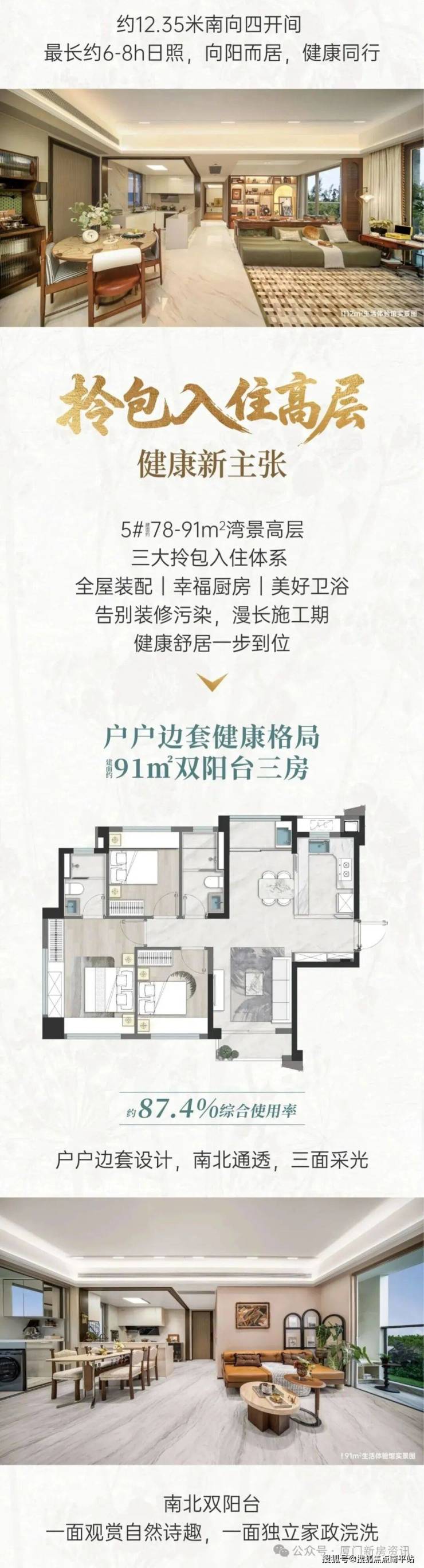 5#高层, 79㎡类边套设计/89/91㎡边套3房,2梯3户配置。 瞰社区水景中庭,视野开阔,尽揽一线湾景。岛外罕有的 精装交付+拎包入住 产品。售楼处☎️预约热线:400-159-8559转分机号8666(售楼处.营销中心)【VIP贵宾专线】